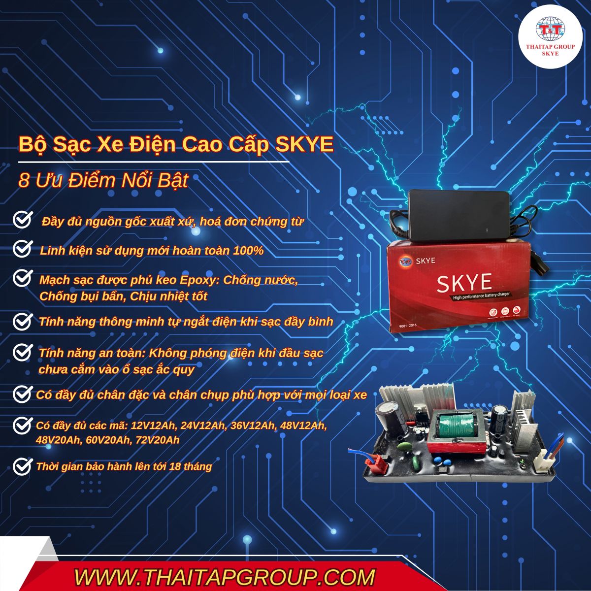 Bộ sạc xe điện cao cấp SKYE với khẩu hiệu “SKYE SỨC MẠNH VƯỢT TRỘI” tự tin là sản phẩm sạc xe điện đáng dùng nhất hiện nay với các tính năng nổi bật như: